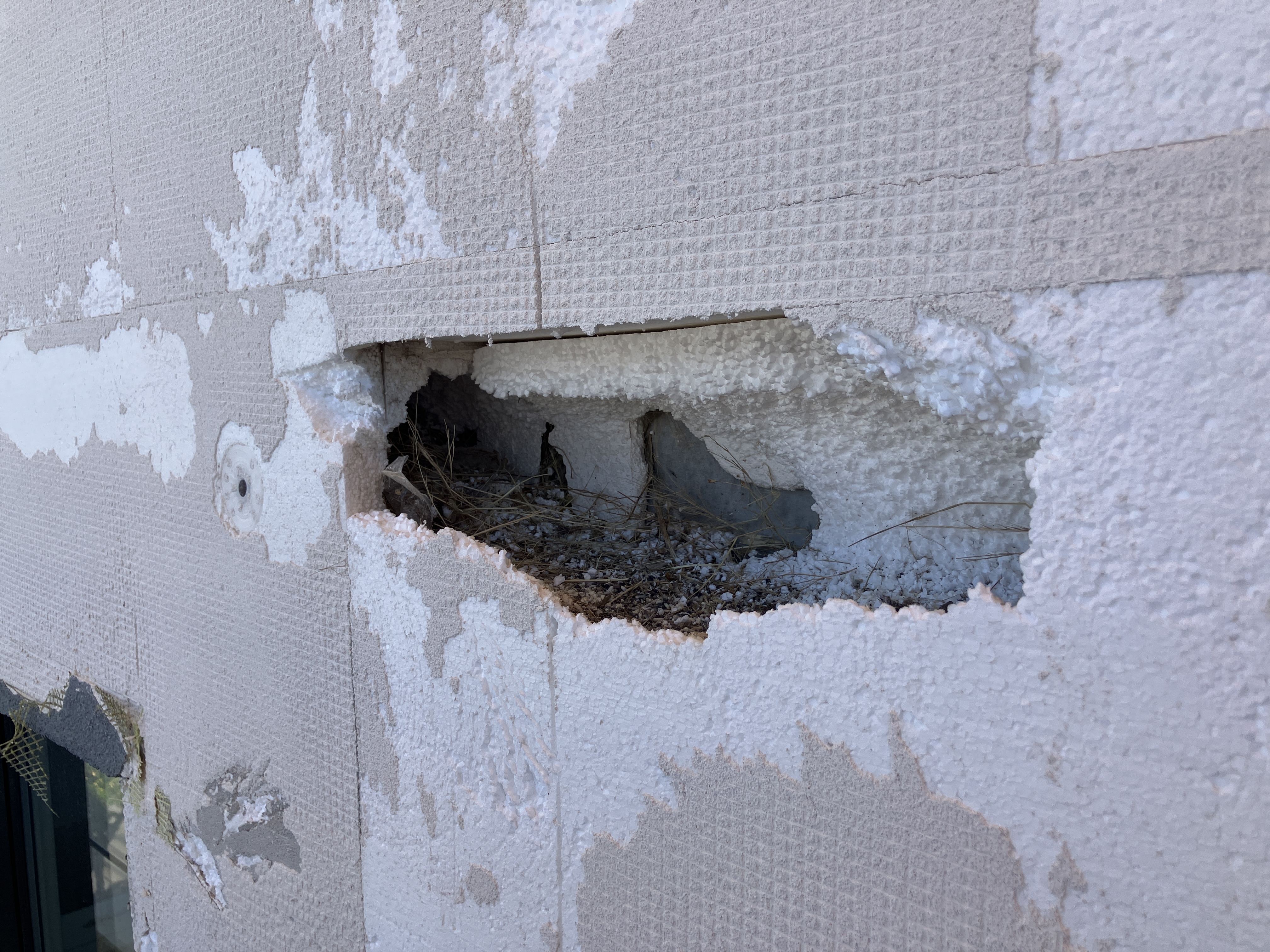 Fehlerhaft ausgeführte Kompaktfassaden (fehlende Netzeinbettung im Storenbereich) begünstigen Insekten (z.B. Hornissen) und Vögel (z.B. Finken) im Nestbau!